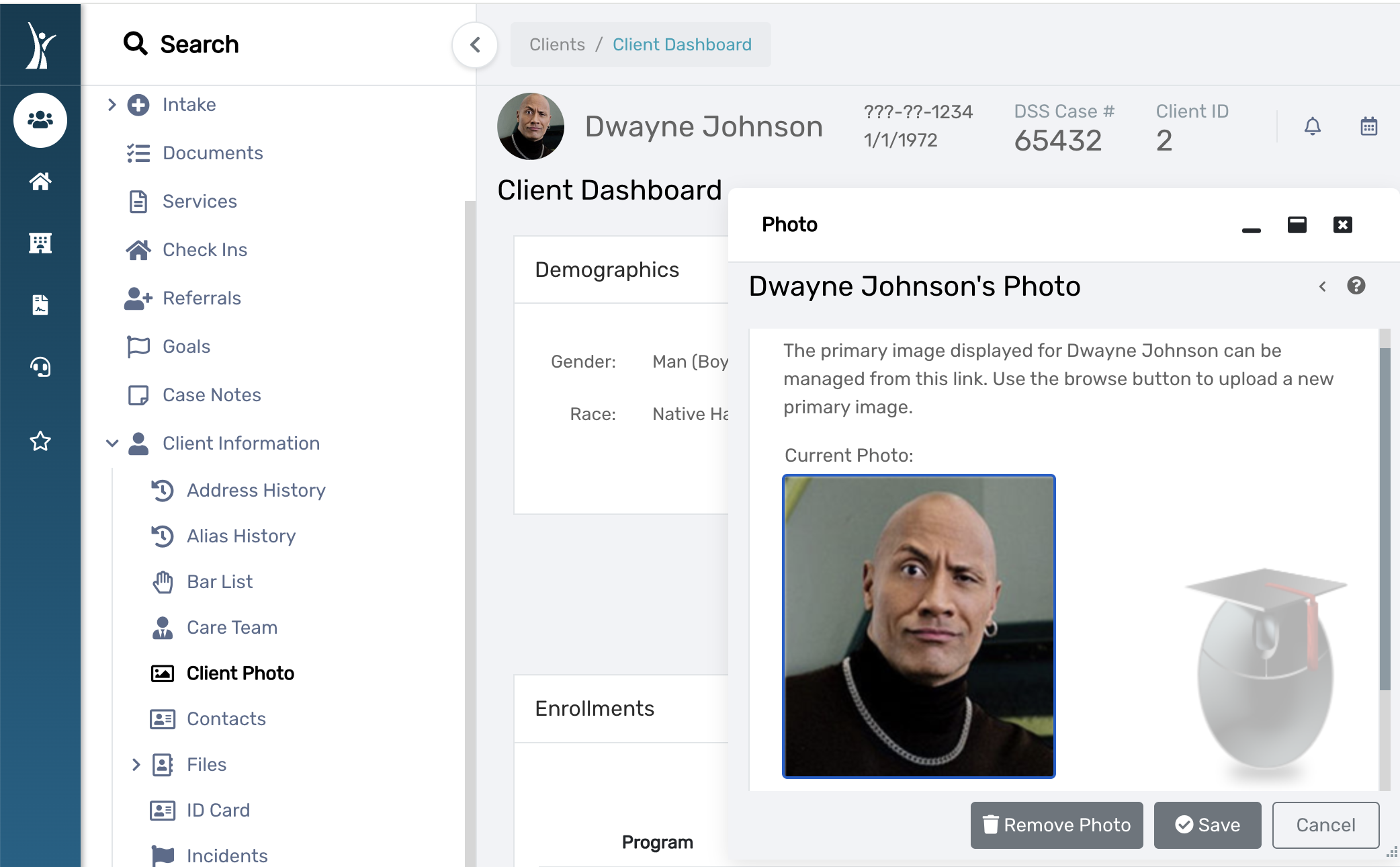 - Go to the CLIENTS screen, expand CLIENT INFORMATION from the menu, and select the Client Photo option.